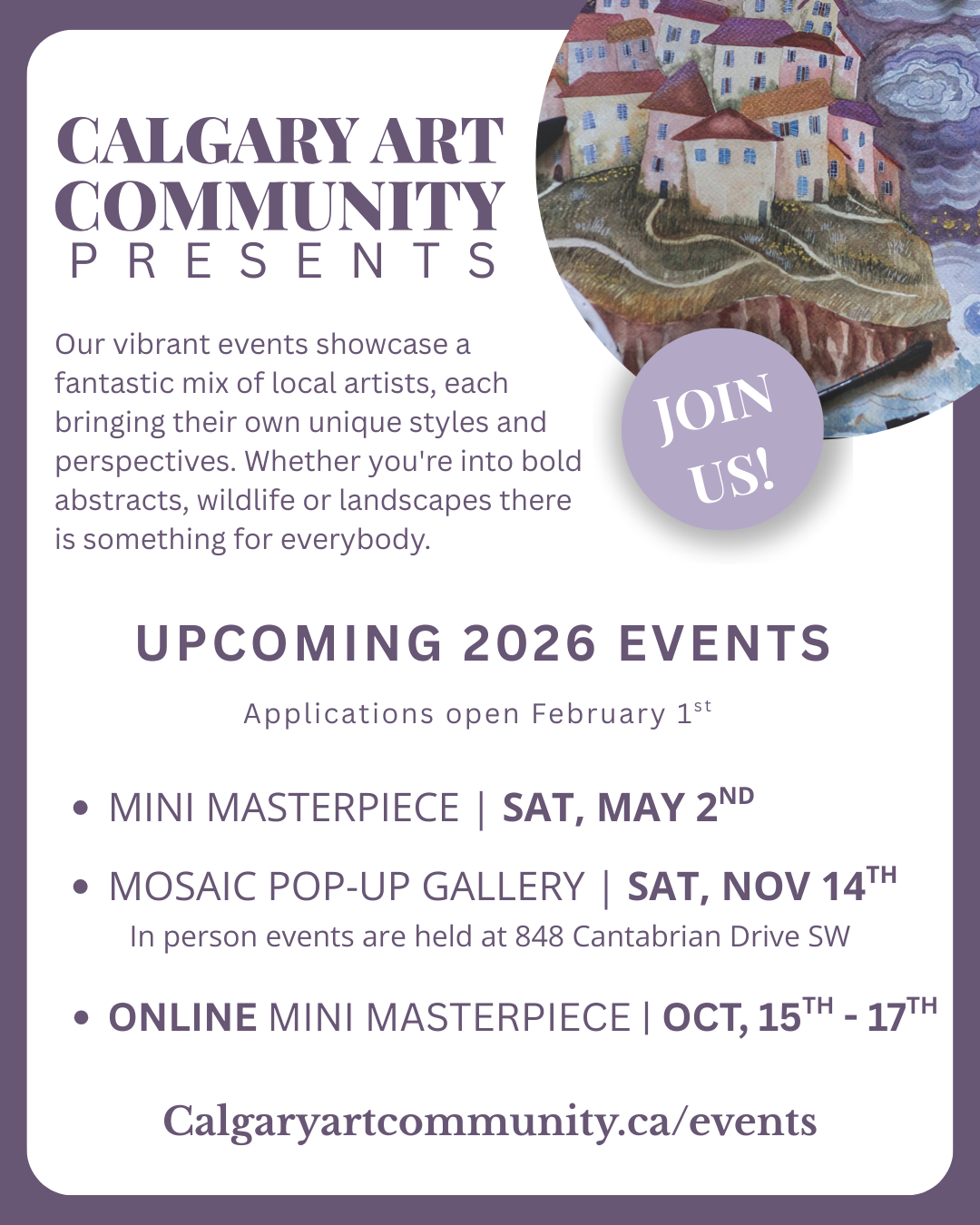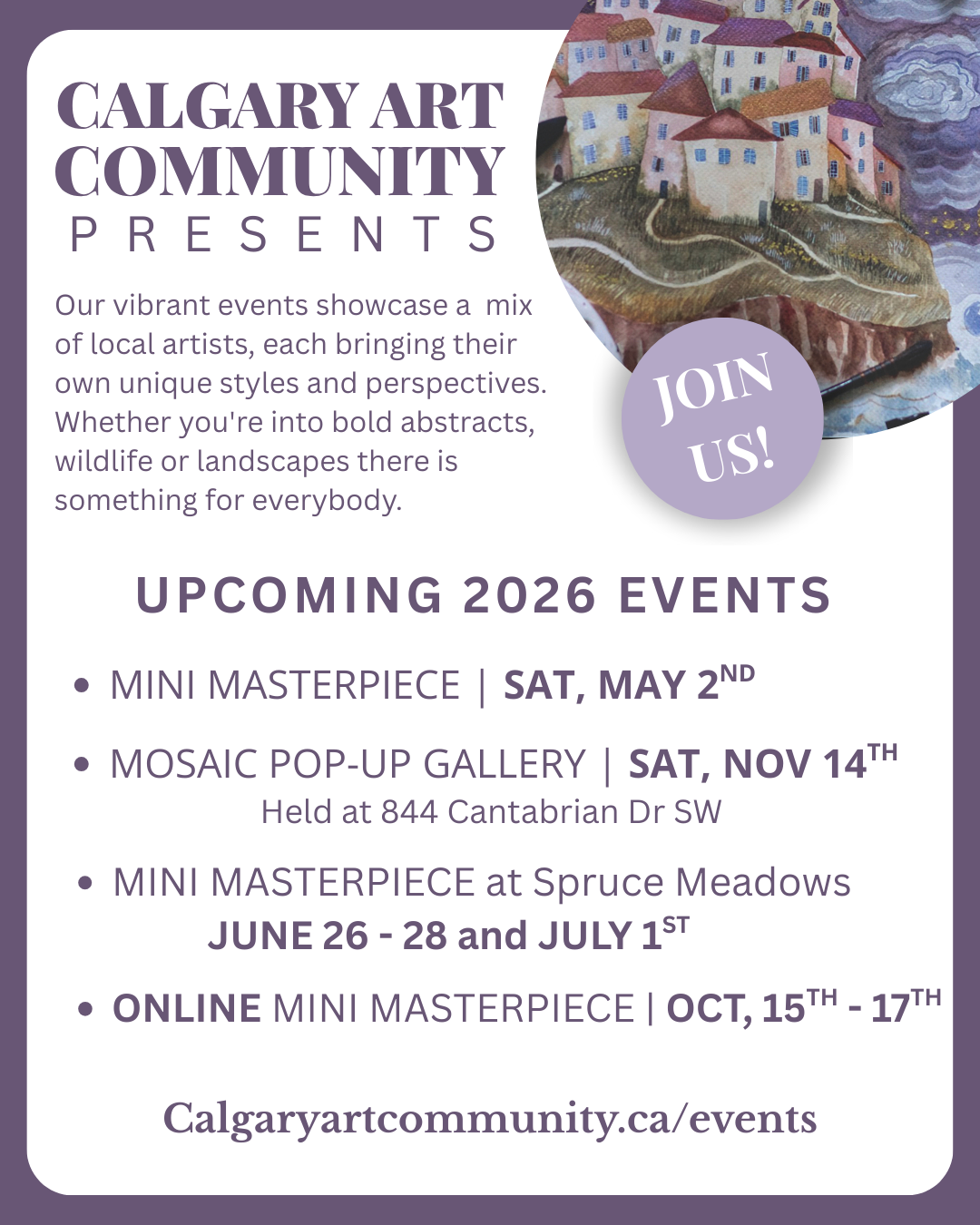 Calgary Art Community is an artist-driven organization that provides a platform for local talent. Our mission is to foster a sense of community through art, connecting people and celebrating creativity. We believe that art has the power to bring people together and make a positive impact on the world.